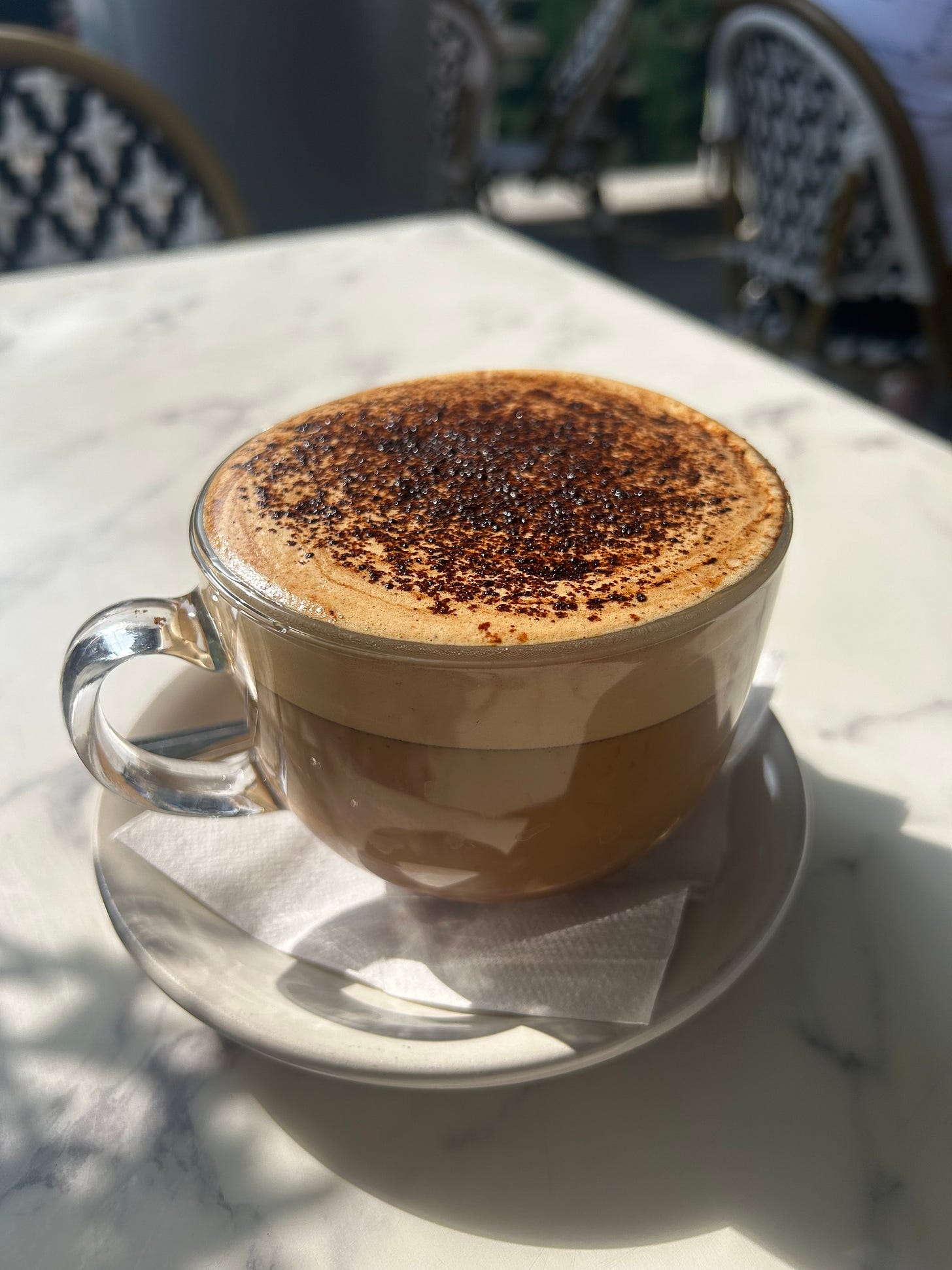 “A Turkish Latte, please,” I said with a smile when the server finally came to take my order. For those of you just starting on your coffee-discovering adventures I highly recommend ordering a Turkish latte when the opportunity arrives. A strong and slightly sweet latte flavored with cardamom and topped with foamy warm milk is sure to please. Before taking that last satisfying gulp of coffee be careful to not get the finely ground coffee beans that settle sleepily in the bottom of your cup caught in your teeth. Turkish Coffee is made with ultra-finely ground coffee that isn’t filtered out before being enjoyed.